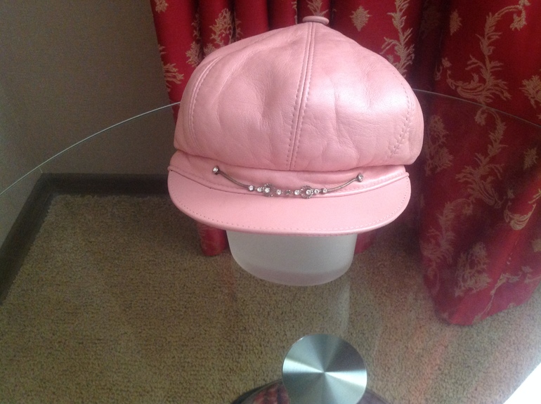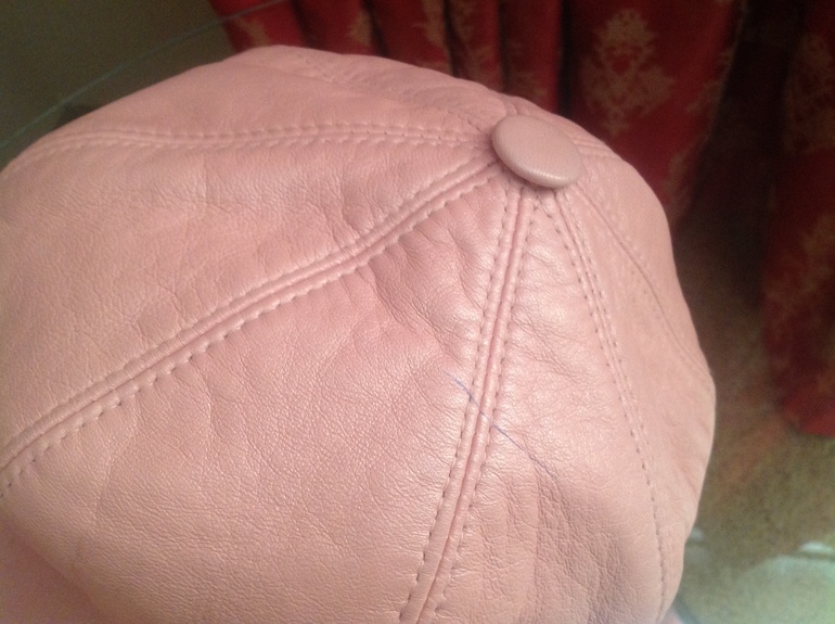 3. Кепка стильная. Кожа. Цвет наиболее точно передался на последнем фото. Такой телесно-розовый или пыльная роза. Утепленный подклад. Резинка по объему. Новая. Ни разу не надела. Дизайнерская (Московские дизайнеры GRUPPA [ план жэ:]. Есть нюанс, поэтому отдаю за 500 руб. Фото нюанса выше: небольшая линия чернильная. Чистить не пробовала, но знаю, что есть способы отчистить. Хотя в носке незаметно.