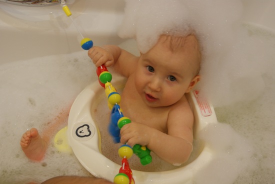 Всегда с пеной, Юлечек. Меня саму прет от этой пены (последствия тяжелого детства без пены). Она ее в руках мутозит, вроде хочет съесть - а ухватится не может, все выливается через пальцы.