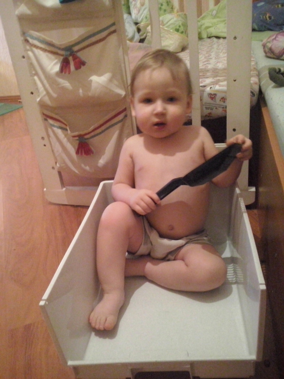 Вобщем-то развитие пока без особых скачков. Постоянно появляются новые слова, больше один слог из них произносит, но уже осмысленно, фразами не говорит. Мы все еще с соской спим. Никак не отвыкнет. Если качать, может и без нее уснуть, во всяком случае днем. Но ночью нет, грызет и обсасывает пальцы. Так что я пока притормозила с этим. Пусть сосет. Может, как зубы вылезут, попробую снова.