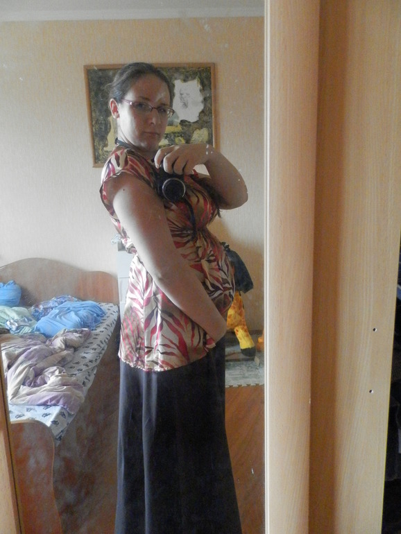 Ну и мой нереальный пуз. Эта блузка его чуток увеличивает, но как-то он все равно великоват. качество отвратное. но так, на память. неделю руки не доходят зеркало