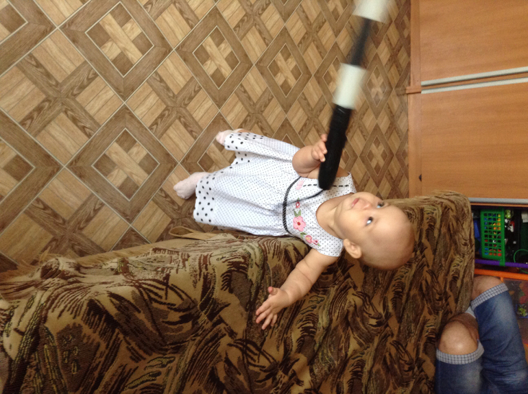 Время летит очень быстро, скоро11 месЦев, а там и год. Кира большая умница, уверенно ходит, играет со всякой всячиной, гоняет котика, у нее 6 зубов, 4 уверенно торчат, 2 лезут изо всех сил:) хорошо ходить она начала недели полторы назад, с ней так здорово гулять! Иногда она ходит сама, иногда держишься за руку:) часто коляска на прогулки оказывается не нужной:) спим мы 2 раза в день, но бывает и 1, кушаем много всего, хорошо жует, самое любимое это пожалуй бананы, хотя кушает охотно. К врачу не ходили 2 месяца поэтому точно рост и вес не знаю, вес где то12 кг, а вот рост совсем не понятно, новые одежки берем с маркировкой 90 или 1-2 года:) красавица!