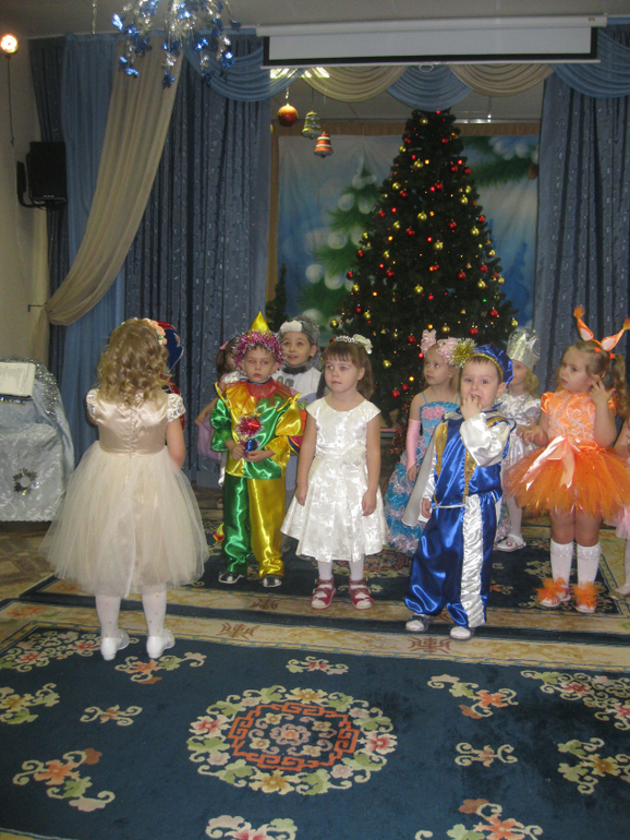 Зато в этот раз моя красота справилась на "отлично"! Ни разу не подбежала ко мне за время представления и не плакала совсем! Только периодически мне махала ручкой,видимо проверяя смотрю я на неё или нет))) Самое главное - дочка не узнала деда Мороза(им был наш папа), чего я очень боялась. А вот и несколько фото(немного темные т.к освещение было приглушено в зале):