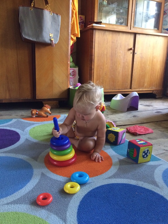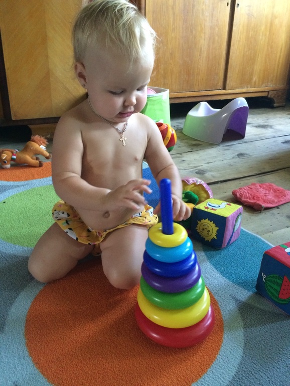 Она сама там игралась, смотрю пол пирамидки собрано, я фотик схватила, а любава до конца продолжила. Сегодня закрепила успех сидя на горшке собрала опять. Мумочка моя