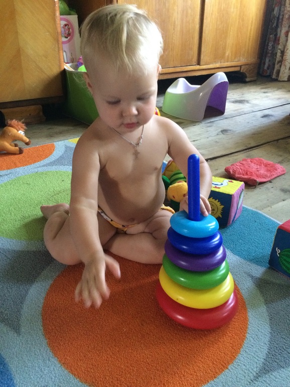 Любава вчера (27.07) собрала пирамидку по "правилам"! Я ей, можно сказать, этого не показывала. Думала это годам к трем