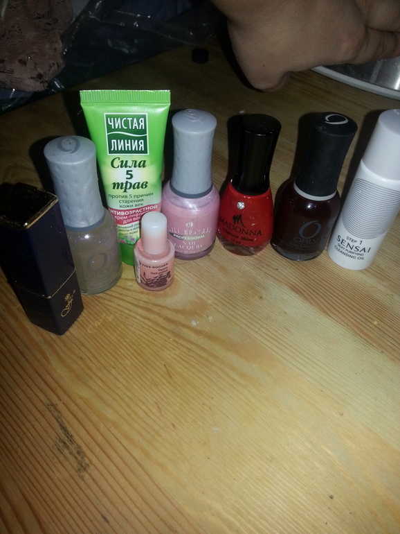 Самовывоз! Первые два лака слева новые, в остальных половина. Помада коричневая, новая, крем для век новый, пробник масло для умывания.