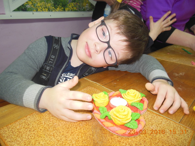 провела я с Ильей.Город Омутнинск-это 4 часа добираться на машине по нашим дорогам.Санаторий в лесу,в трех км от этого городка.Процедур назначили много.Еле успевали все пройти до обеда.Одна бабушка подсчитала,что детей за день приходилось одевать и раздевать 27 раз.Кстати,половина деток были с бабушками.Жили в комнате по 4 человека-две бабуси и два .внука.Нам с соседкой не очень повезло.Храпела старая.Я спала в берушах,а мальчишкам все нипочем.Кормили сытно,но однообразно.После обеда желающие занимались лепкой из соленого теста.Илья привез много поделок,достаточно хорошо сделанных для его возраста.Занимались детки одни с преподом.После полдника показывали мультики,проводили различные соревнования,шли репетиции к концерту.Когда приехали был еще минус.Катались на коньках дети,на ледянках с горки.Гора была крутая в полном смысле слова.По деревьям прыгали белочки.Мы их подкармливали.Ждем результатов лечения ПОЛОЖИТЕЛЬНЫХ.