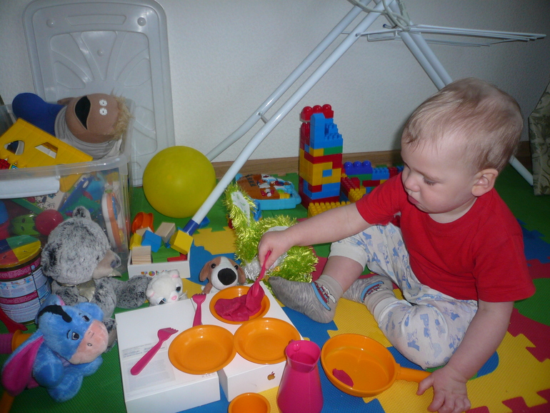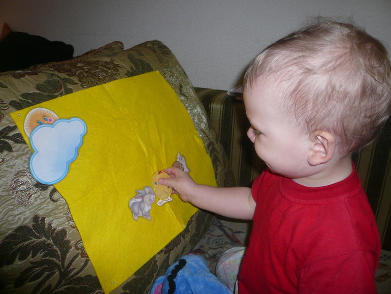 Было у нас и представление. Правда, послушал только пару минут, потом занялся любимым делом- очень любит окошечки, секретики, все прятать и искать. Я прятала действующих лиц друг за друга, оставляла только хвостик или ушко, спрашивала где и он искал.