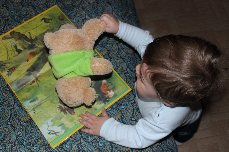 Дальше я читала малышу книжки про Медведей (плюшевый друг тоже изучал где живут его сородичи)))) мы рассматривали картинки, слушали аудиосказку "Три Медведя". Читали стихи, предложенные Светланой, и те, что дома в книгах нашла.
