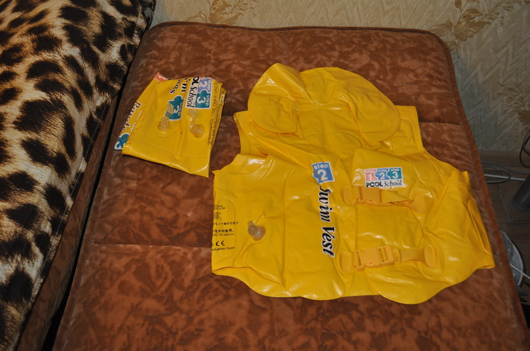 Детское, плавки на 5-6 лет. Сандали 33 размер на широкую ногу. Нарукавники и жилет забрали.