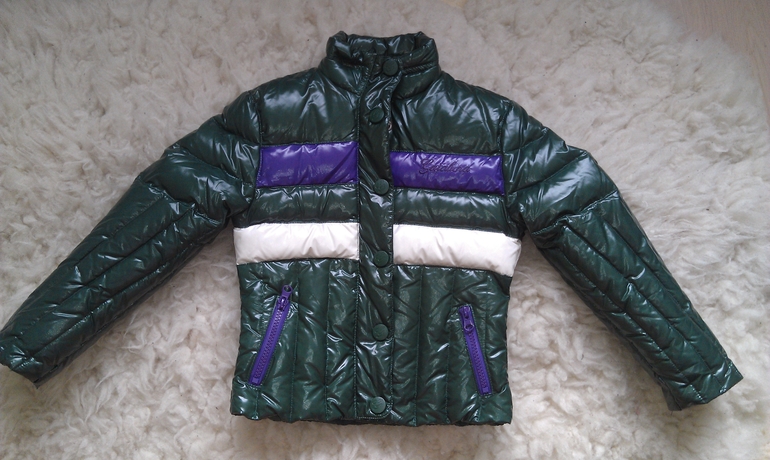 Курточка подойдет как на девочку так и на мальчика. Цвет- сочная зелень с белой и сиреневой полоской. Замеры: длина от плеча-41см, ширина по подмышкам-35см, шир внизу белой полосы- 33см, длина рукова-40см можно загнуть. Внутри рукова скрытая резинка. Цена 1700 .
