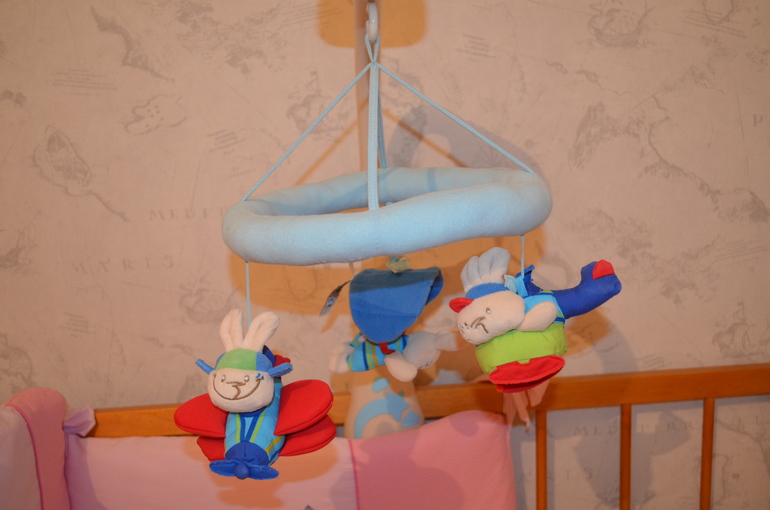 Мобиль в прекрасном состоянии. Музыка, зайцы по кругу летают)) Звездочка светится, все работает. + в подарок батарейки!