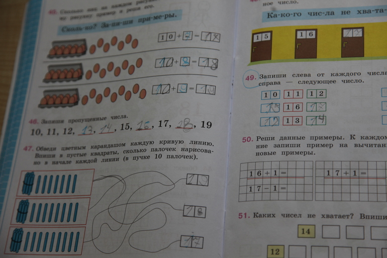 Вчера писали прописи Петерсон. Сегодня решили их не брать, и так много цифр написали пока делали математику.