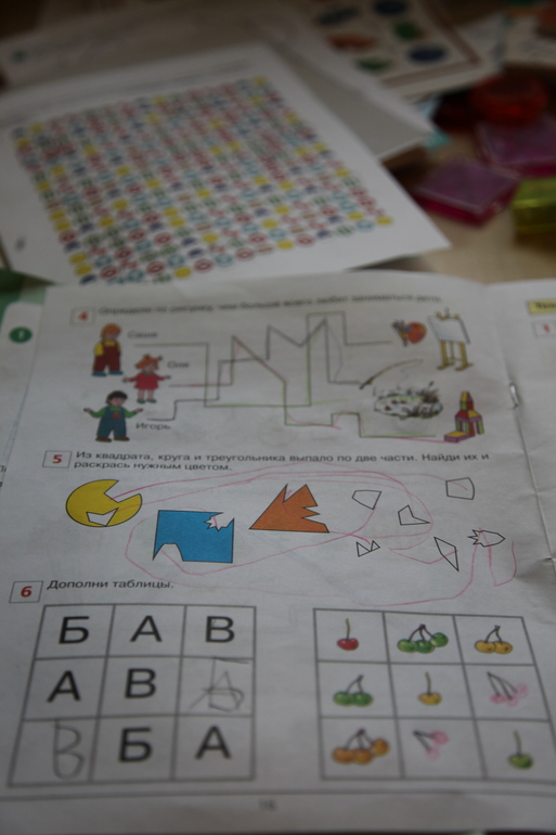 6. На часах 8:47, урок подходит к концу, подключаем Теремкову (окружайка+задания на развитие памяти, внимания, восприятия и т.д.) Не люблю окружайку, но 20 минут на нее потратить готова, да и лексику надо подтягивать.