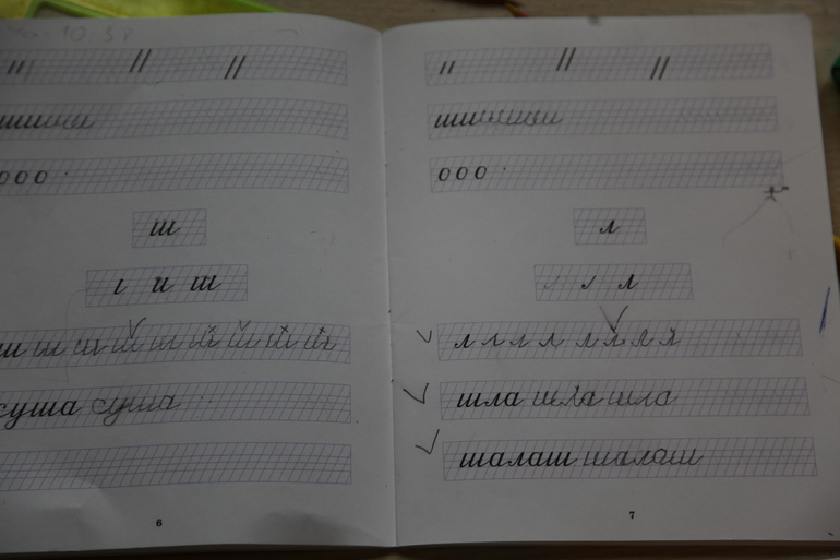 3. Прописи. Обычно Мила их пишет вначале урока, после "устной" фонетики.