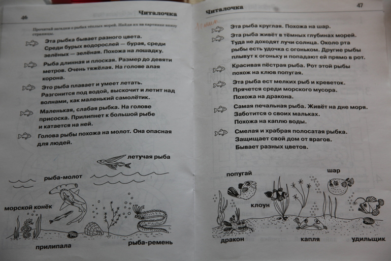 11. Садимся за чтение, 9;45.. Опять эта окружайка. 10-15 минут Мила читает про рыб, вспоминает октонавтов, смотрим картинки с ноутбука.