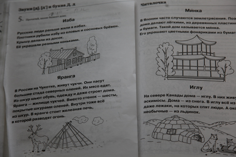 У Мурылёвой интересные задания на чтение. Я раньше иглу, юрту и ярангу не отличала. А оказывается это очень разные.....постройки. А еще я не знала что эскимосы живут в Канаде, я думала они там где-то рядом с чукчами