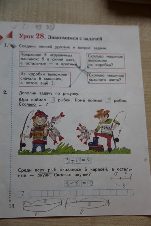 3. Ну и еще одно "место приложения сил" - решение и составление задач. Сегодня, как и вчера, тема "Целое и части", решили составили 4 задачи. Время 13 мин (вчера 20)