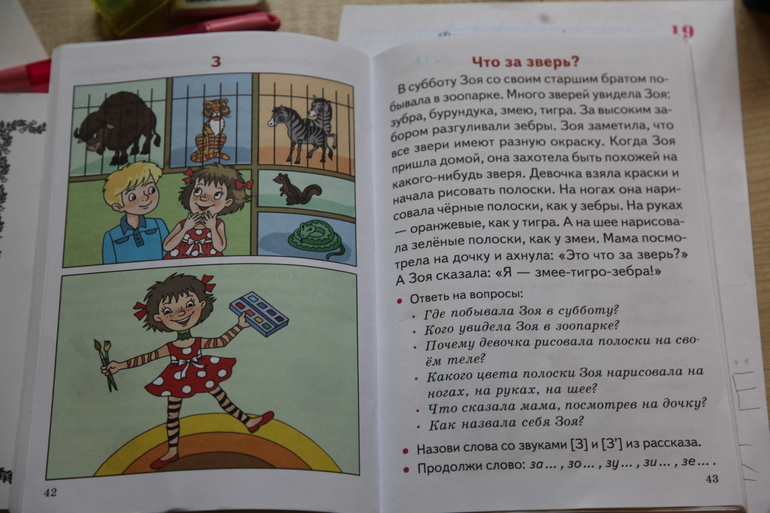 4. Перерыв. Читаю текст, Мила, прыгая на кровати, занимаясь своими делами, отвечает на вопросы, пересказывает. Потом выполняем несколько логозаданий к тексту. 15 мин.