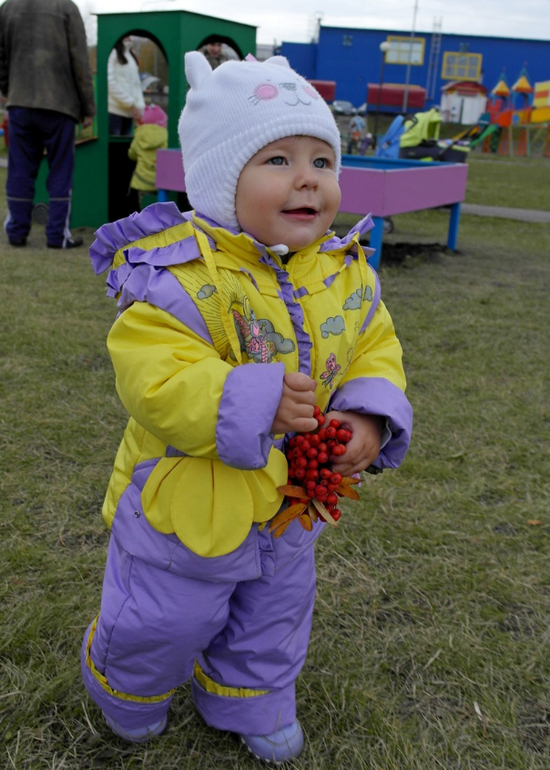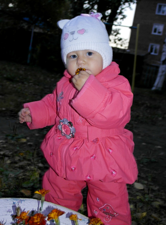Любит гулять на детской площадке,ездим гулять в город на автобусе, так как где мы живем нет нормальных площадок. В автобусе ведет себя прекрасно, сидит не шелохнется) Там у нее много друзей и поклонников) Подружка Анечка и много ухажеров) Мальчишки ее стороной обойти не могут) Она что-нибудь сидит ковыряет, тут же 2-3 подбегут и будут перед ней выгибаться, а она встанет, серьезная такая на них смотрит,отвернется и пойдет))) А жених наш (сын подруги) все пытается ее поцеловать))) Вы б видели ее лицо при этом))) Недотрога моя маленькая)) Ну принцесса и есть принцесса)))