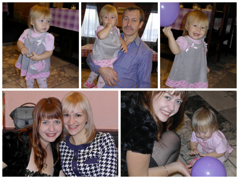 А канун нашей очередной датки 1,3 совпал с юбилеем деда) 60 ему исполнилось) Отмечали семьей в кафе..было 15 человек. Тася вела себя на удивление отлично! Со всеми поплясала-поигарала-посидела на руках, и все без выкидонов и истерик! Кафе было с 17 мы уехали в 22.00 потому как начались капризы, но приехав домой она опять развеселилась и разбесилась-раскидала свои игрушки-погоняла кота…Долго не могла ее уложить спать) В итоге уложила около 12, как раз вернулся папа-развез всех гостей по домам, и привез родителей.