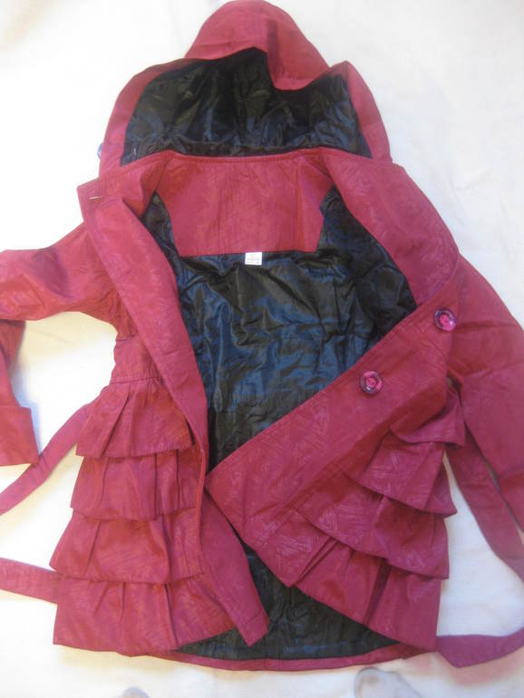 Ткань Таслан, тоненькая прослойка утеплителя . Капюшон не отстегивается, есть поясок.