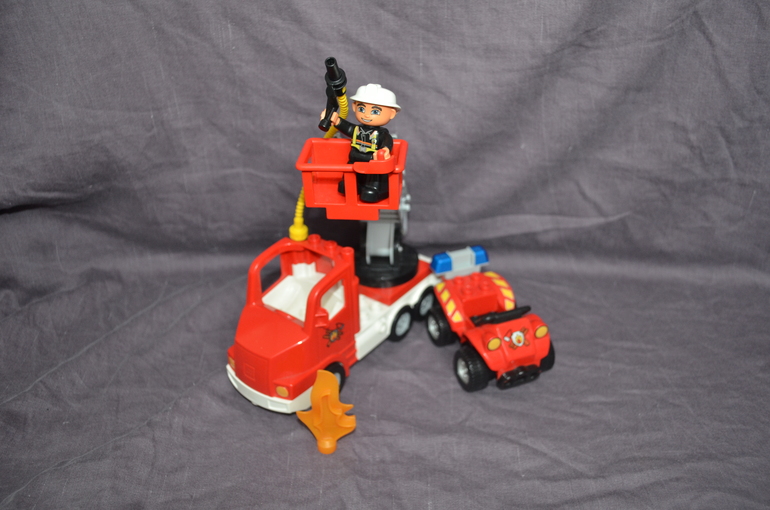 лего дупло пожарная машина с краном и шлангом, ящиком