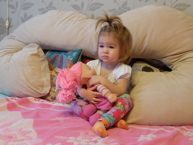 Ульяна теперь часто сидит смотрит мультики в обнимку с куклой. На лице при этом какая-то материнская боль, что ли.