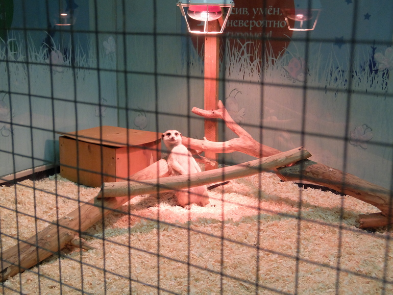 А вот такое смешное животное (я не запомнила, как оно называется, а табличку с названием почему-то сняли) сидело развалясь и с достоинством смотрело на нас из своей клетки.