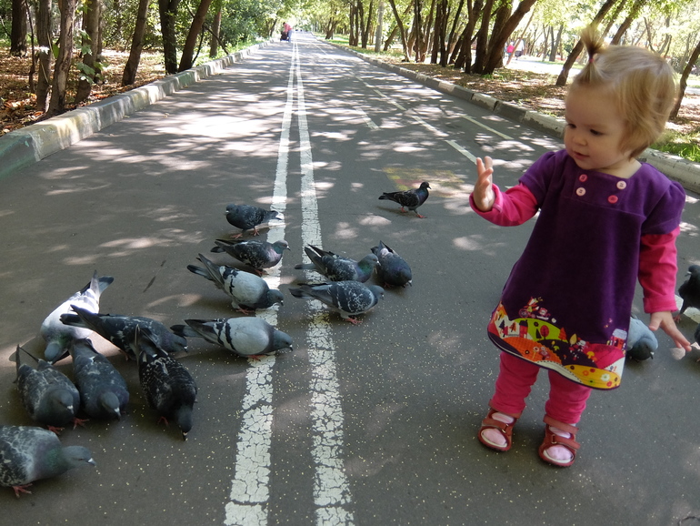 На выходных мы уезжали в Калугу. Ульяна много времени провела с нами и на природе, и на городских улицах.