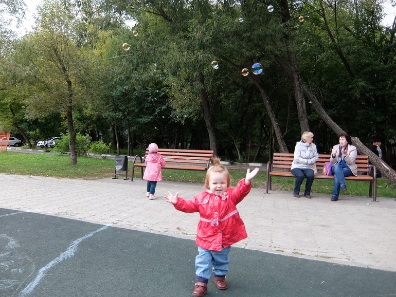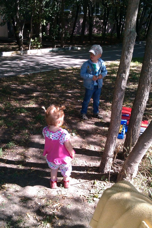 А с дружбой у нас пока что ничего не получается. Девочки, с которыми мы начинали общаться на площадке сразу после годика, все как-то разбрелись - кто по другим площадкам, у кого режим изменился. С одной девочкой, нашей ровесницей, мы так и встречаемся 2 раза в день; только мы уже почти уходим домой, а они едва приходят.