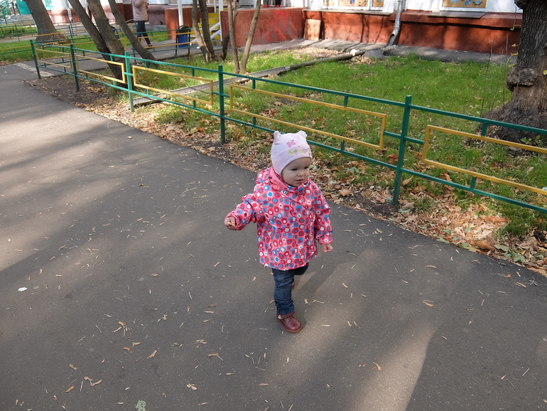 Гуляем мало. В основном, до магазина и обратно. Если поймаю настроение, то немного потусуемся на площадке. Если же настроения нет, то идём домой.