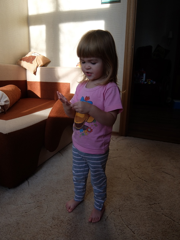 Мы вышли из кабинета, и тут моя девочка расслабилась и в коридоре, пока мы одевались, поговорила со мной. Говорит она плохо. Фразу строит кусочно. Глаголов почти нет. Логопед, как оказалось, "послушала нас из-за угла". Завтра, на следующем занятии, я надеюсь, что мы обсудим это.