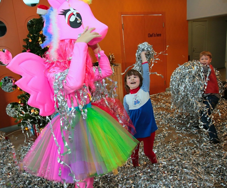 Пришла мокрая ,аки мышь!Счастья через край.А вон там мальчик справа-это её племянничек)) ,сынок моего родного племянничка,внучек) мой.Ей богу в нашем новом кафе было веселее,чем на двух ёлках) Завтра с папой ещё в тц на веселуху намылились)