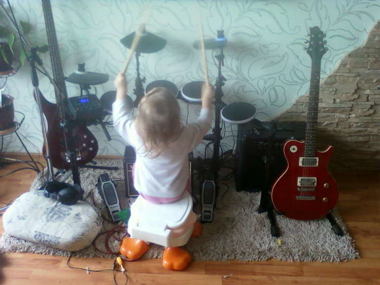 А пока мы - барабанщики, установку сама включает, и как интересно выходит, музыка настоящая
