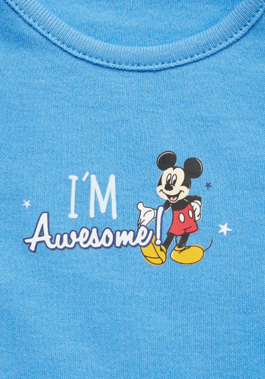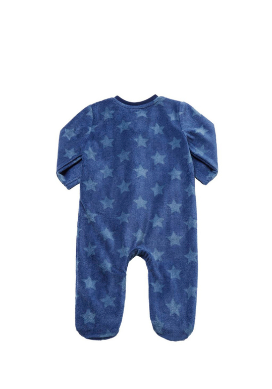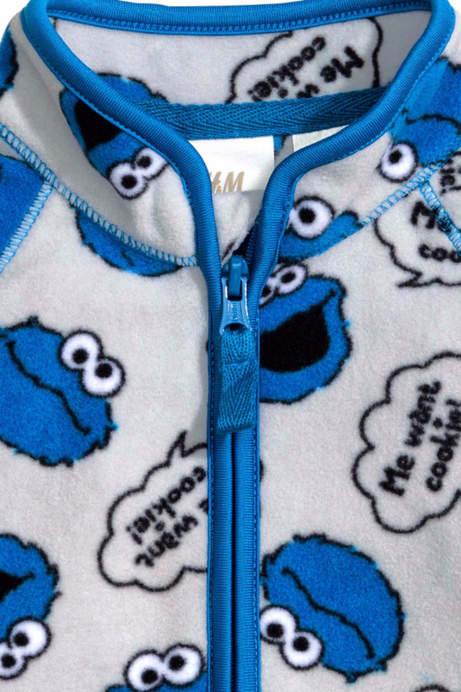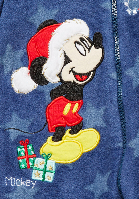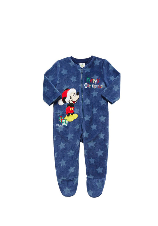Слип флисовый фирмы F&F. Синий с голубыми звездами, впереди аппликация Микки Маус в новогодней шапочке, застегивается на молнию. Состав полиэстер.