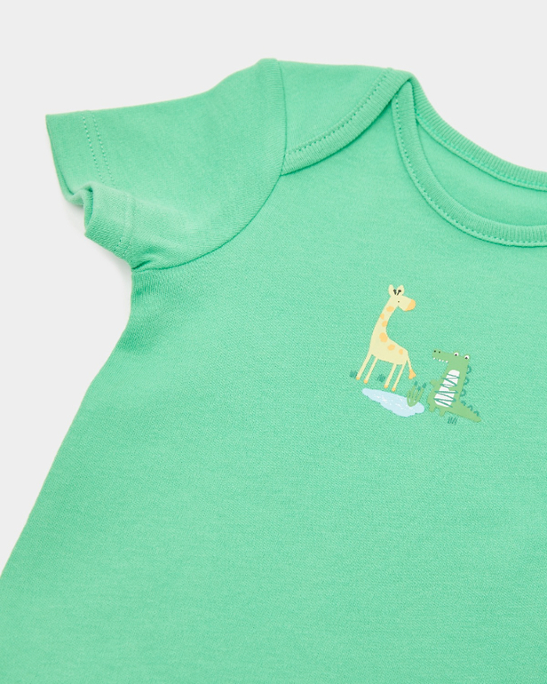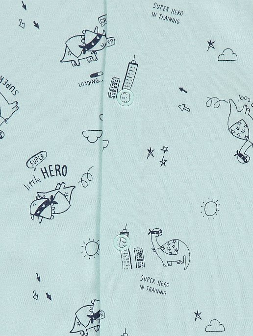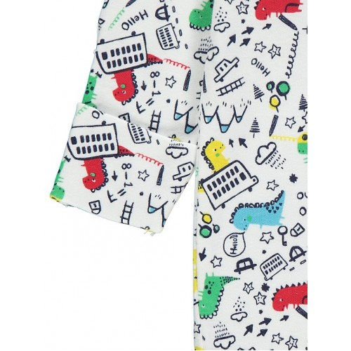 Комплект из 2х слипов Динозаврики в городе фирмы Matalan. Мягкий трикотаж, полностью расстегиваются-застегиваются на кнопках, полоска белая-зеленая и белый с голубой отделкой, домики и Динозаврики по всему слипу. Состав 100% хлопок,