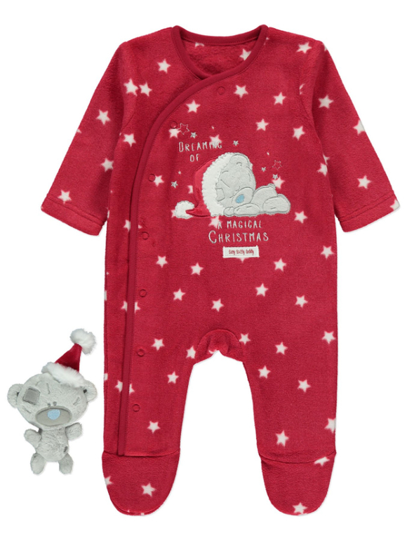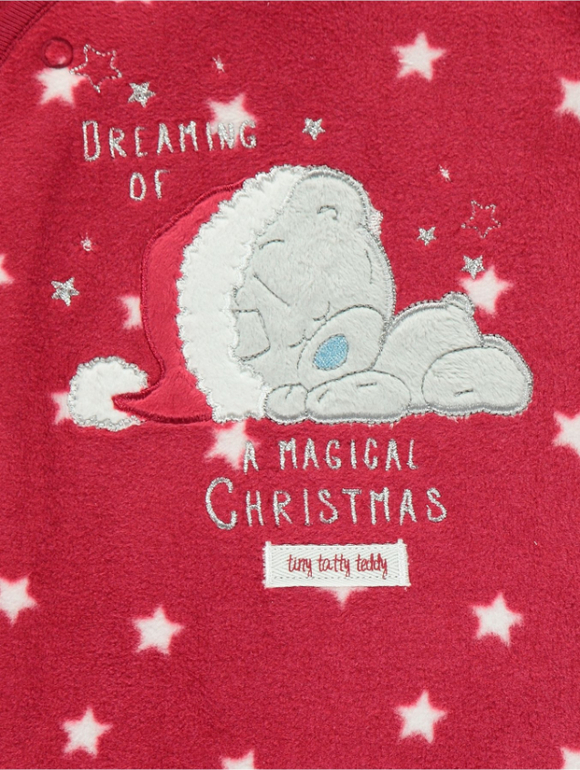 Комбинезончик флисовый Мишка Тэдди фирмы George. Красный со звездочками, впереди аппликация меховой Мишка Тэдди в шапочке, застегивается на кнопки сверху до низа. В комплекте мягкая игрушка Мишка Тэдди в колпачке.