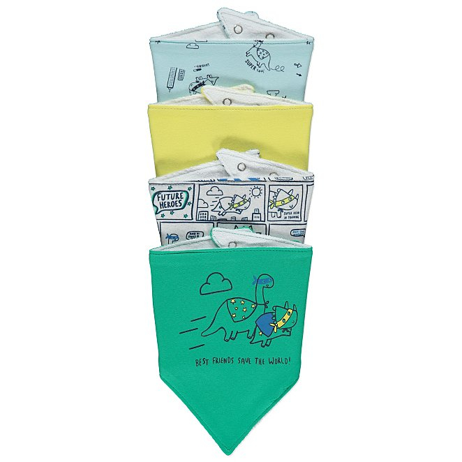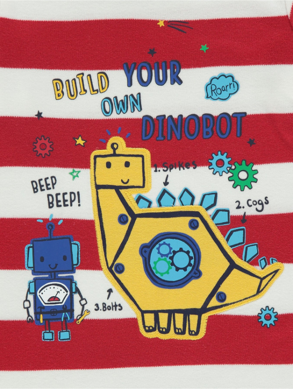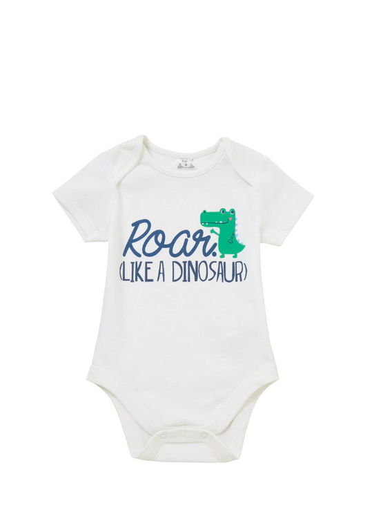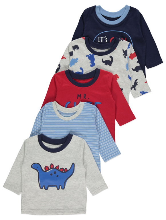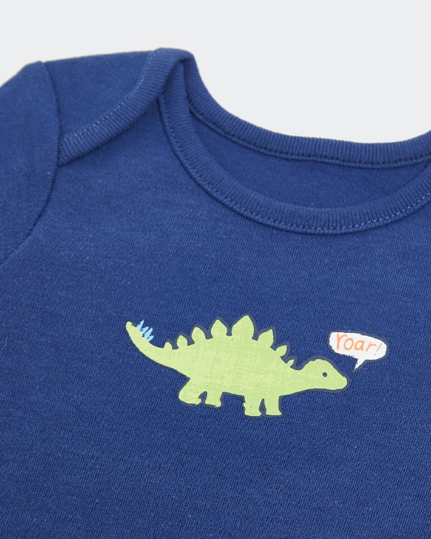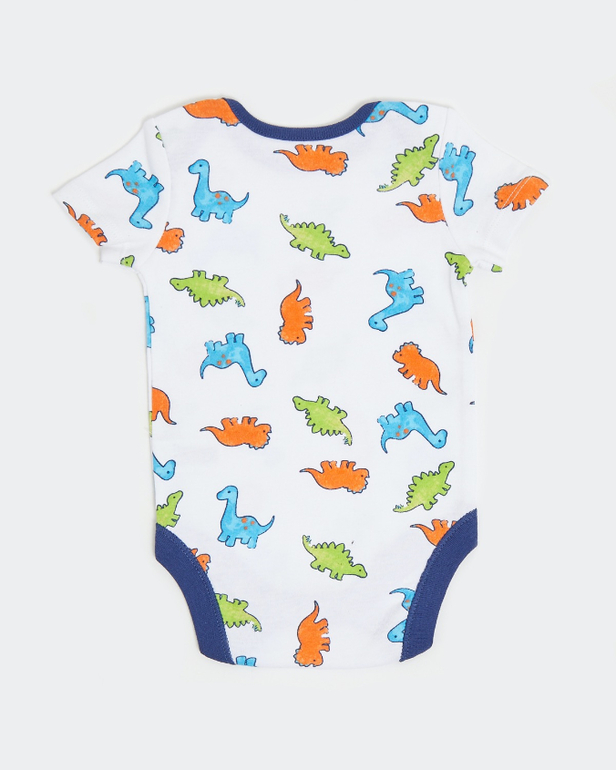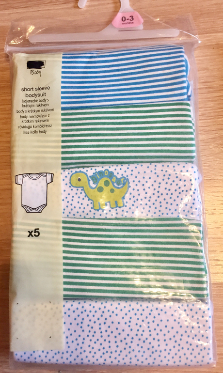 Комплект из 5х слипов Динозаврики фирмы George. Оранжевый с рисунком и голубой с рисунком застежка-кнопки только внизу между ног. Голубой без рисунка, синий с динозавриками и белый с динозавриками и ракетами - полностью расстегиваются-застегиваются на кнопках . Состав 100% хлопок,