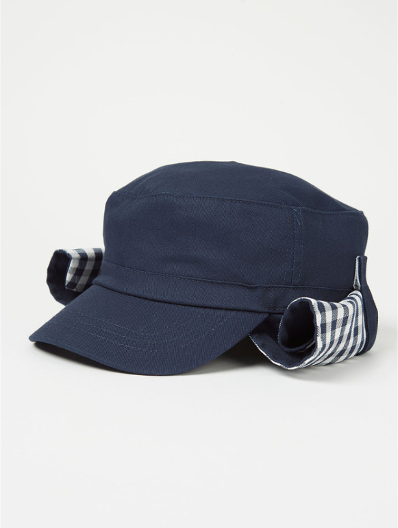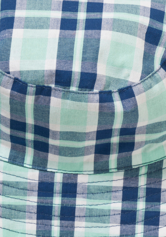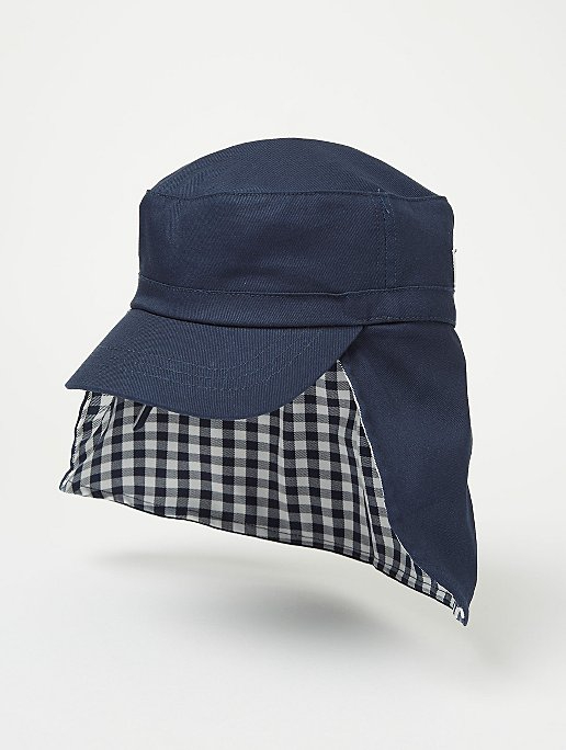 Панамка фирмы George, тесно-синяя с отделкой в клетку, с козырьком и защитой шеи от солнца, крепится на липучки в подвернутом виде