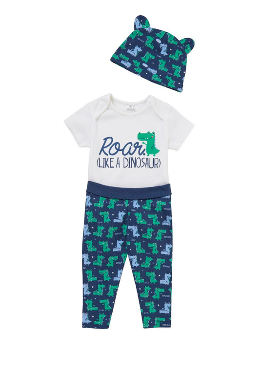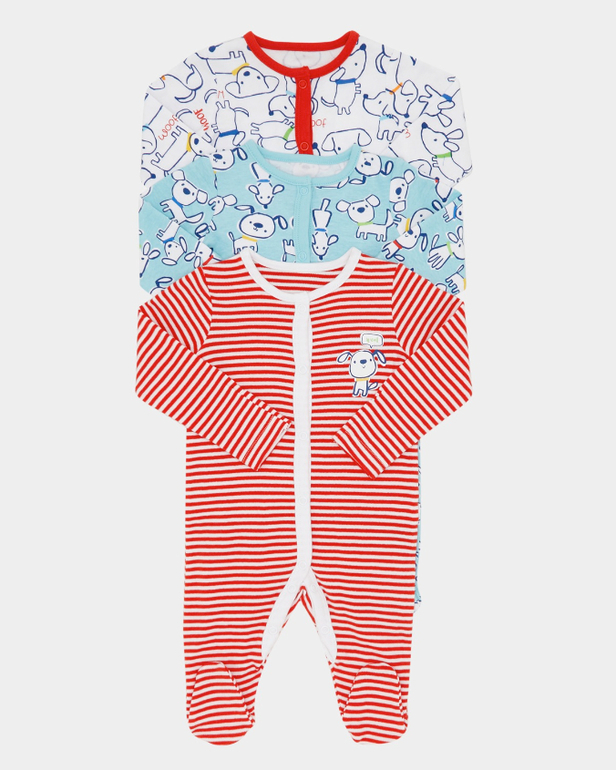 Комплект из 3х слипов Динозаврики фирмы George, полностью расстегиваются-застегиваются на кнопках . Голубой с сине отделкой и Динозавриком на груди + белый с яркими динозавриками по всему слипу + синий с белыми полосками и красной отделкой. Состав 100% хлопок,