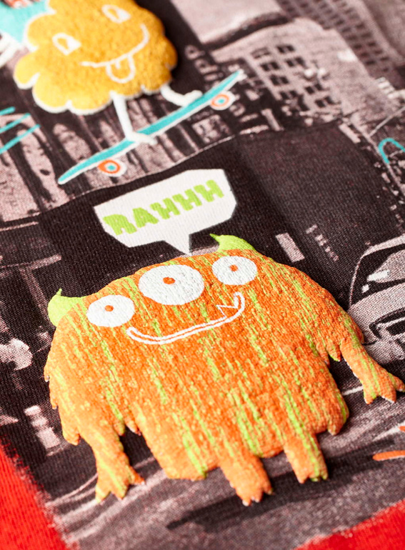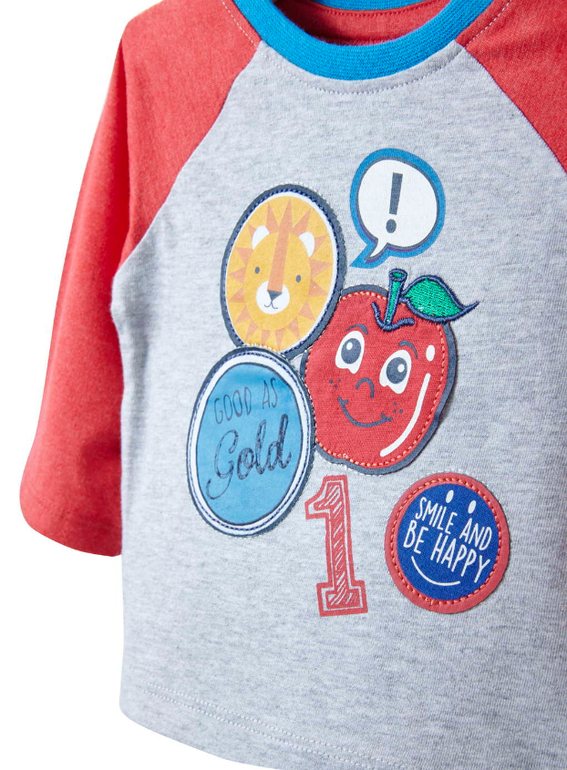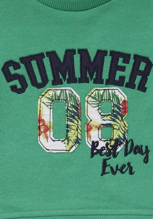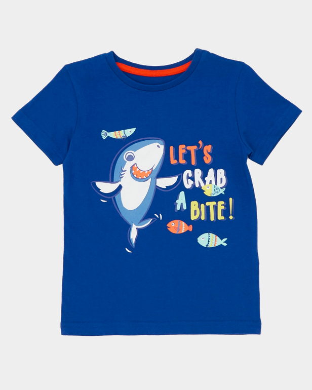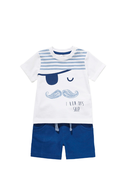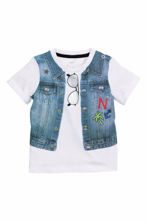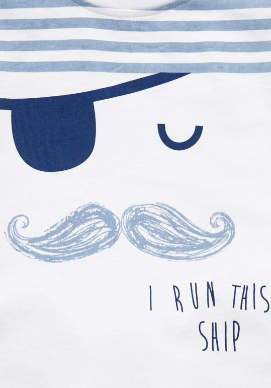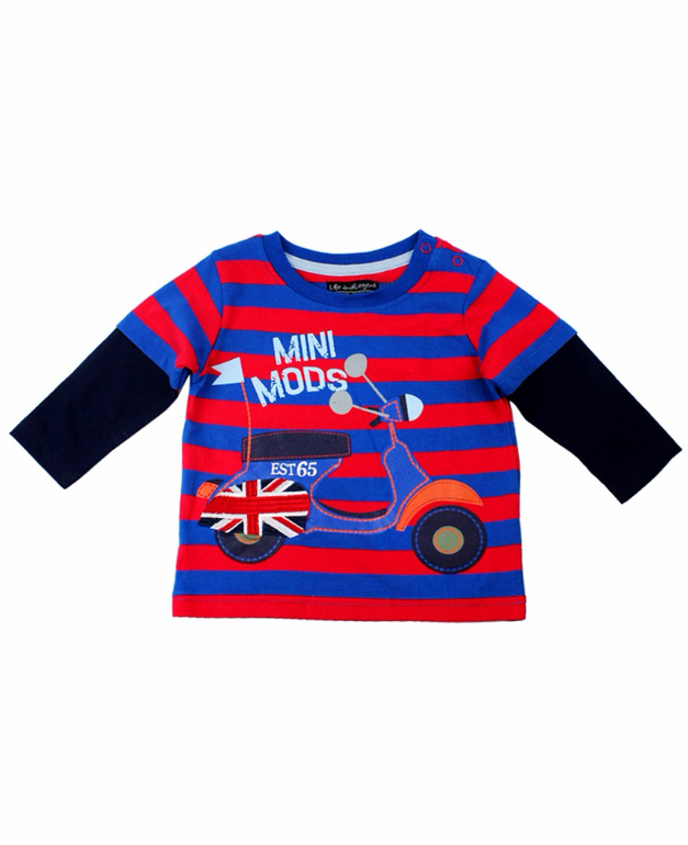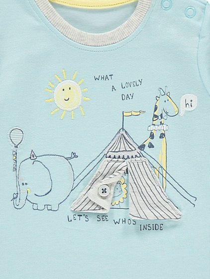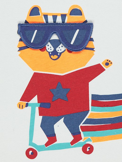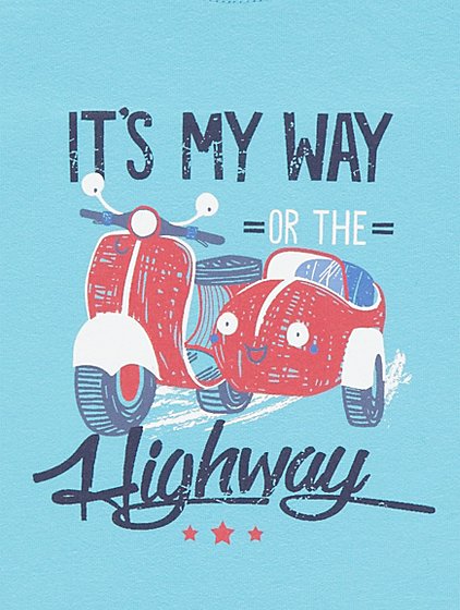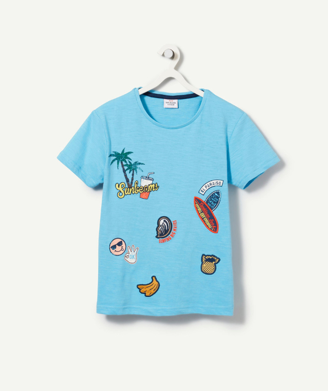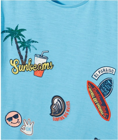 Футболка фирмы t-a-o (Tape à l'oeil) Франция. Голубая, впереди аппликации в летней тематике. 100% хлопок.