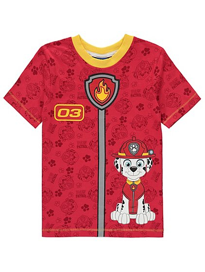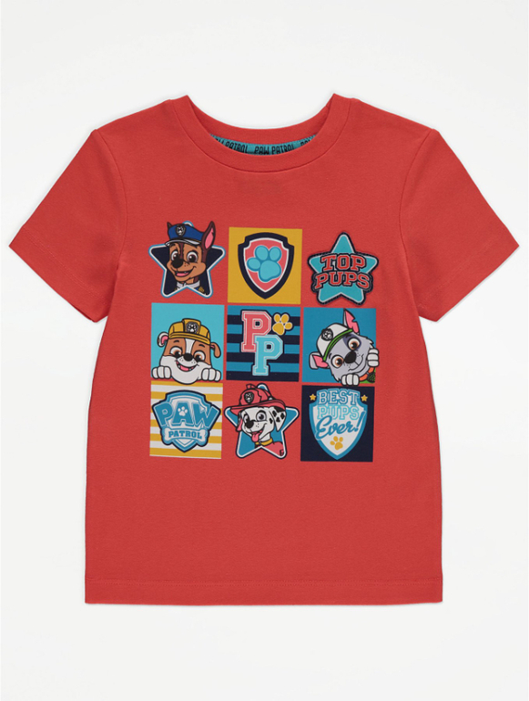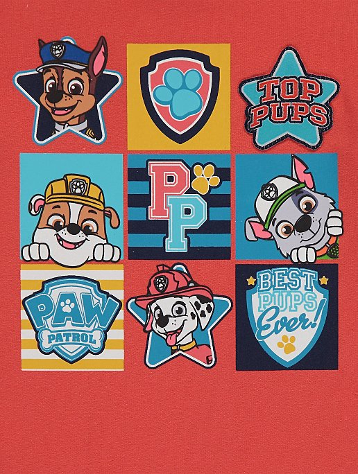 Футболка Щенячий патруль фирмы George. Коралловая, впереди аппликации и рисунки героев из Щенячьего патруля. Состав 100% хлопок.