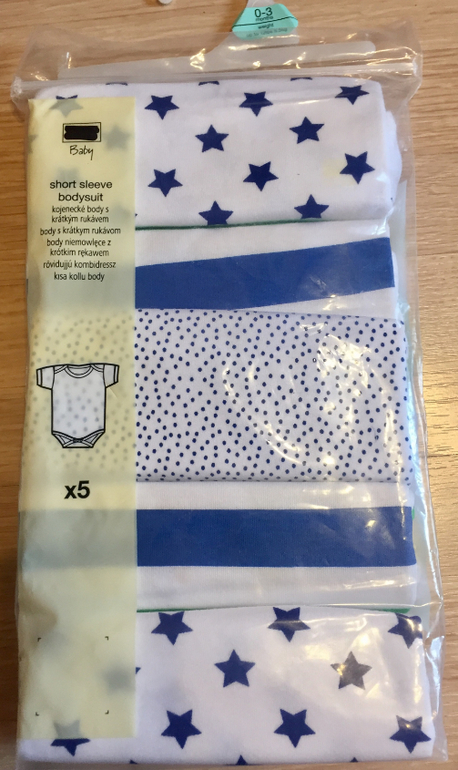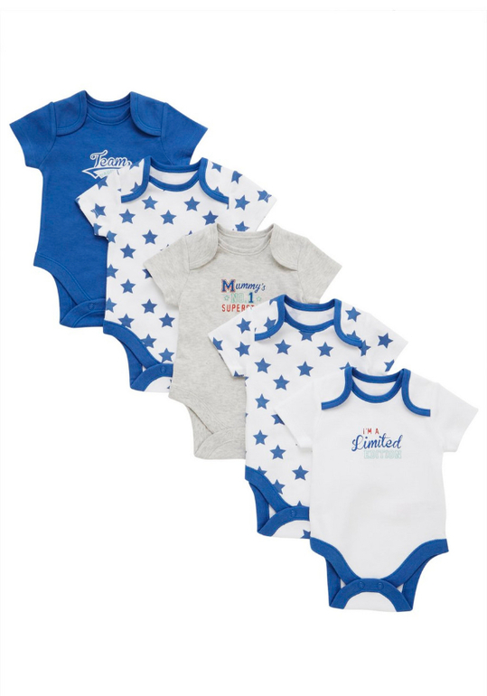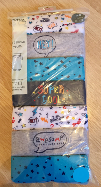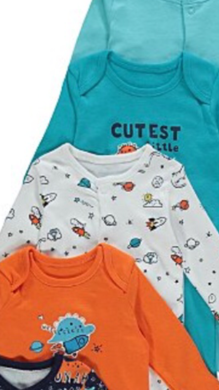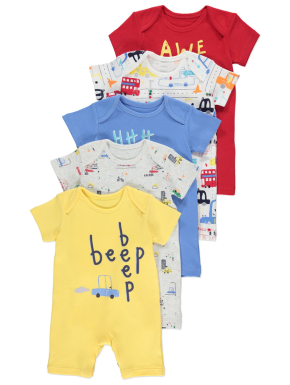 Комплект из 5х слипов фирмы George. Все полностью расстегиваются-застегиваются на кнопках . Состав 100% хлопок,