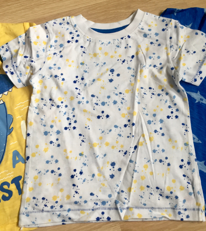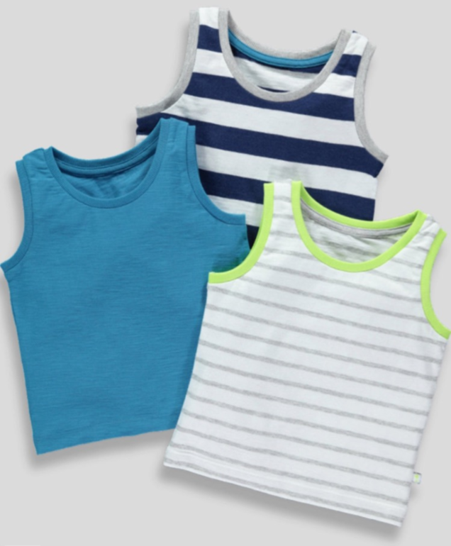 Майки фирмы Matalan. Голубая + белая-синяя полоска с серой отделкой + белая-серая полоска с желтой отделкой. Состав 100% хлопок,