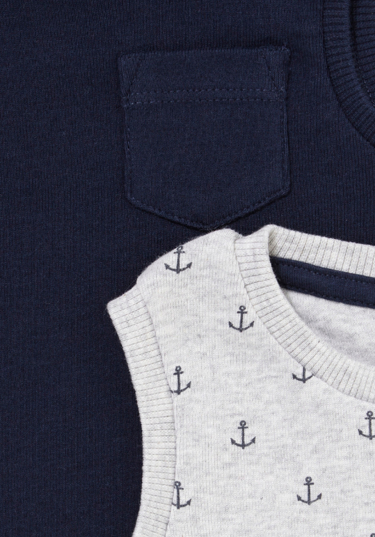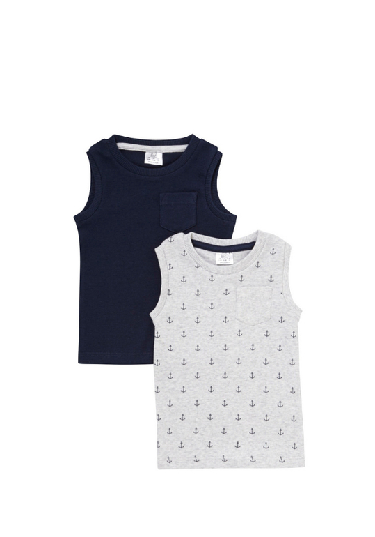 Маечки фирмы F&F. Синяя с кармашком на груди + серая с якорями и кормашком на груди. Состав 100% хлопок,