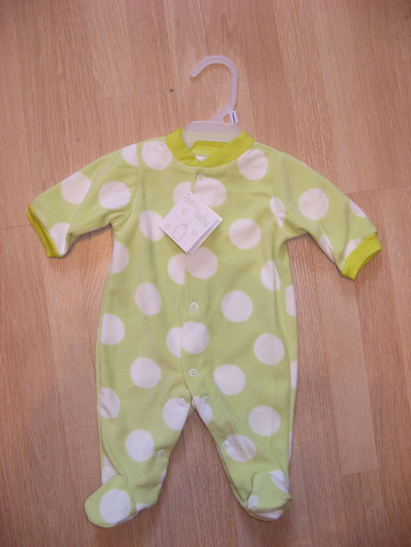 Флисовый слип фирмы New baby. Флис мягенький, тоненький, полностью на кнопках с верху до низа,салатовый с белыми кружочками. Состав 100% полиэстер,
