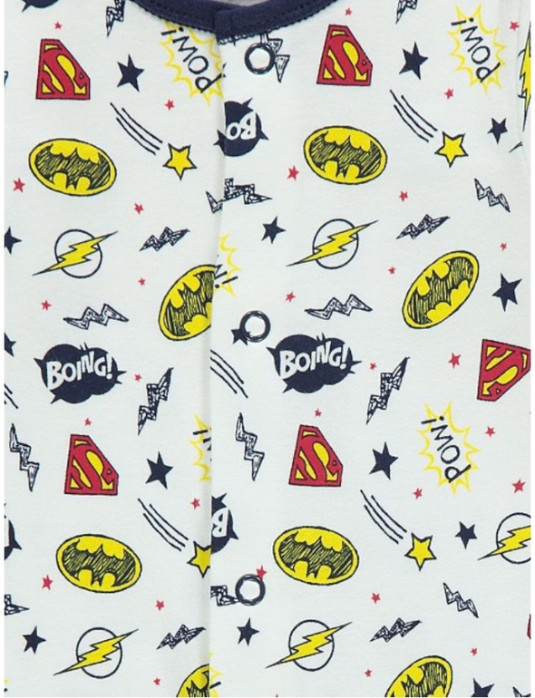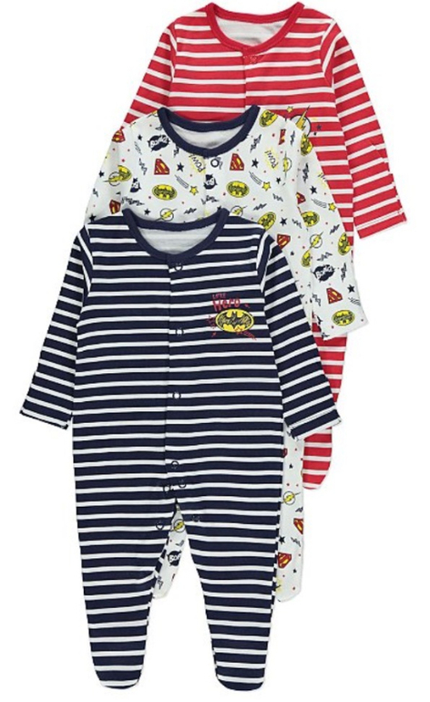 Комплект из 3х слипов Супергерои фирмы George, полностью расстегиваются-застегиваются на кнопках . Красный в полоску эмблемой Супергероя Флэша на груди + белый с яркими эмслемами супергероев по всему слипу + синий с полосками и эмблемой Бэтмена на груди. Состав 100% хлопок,