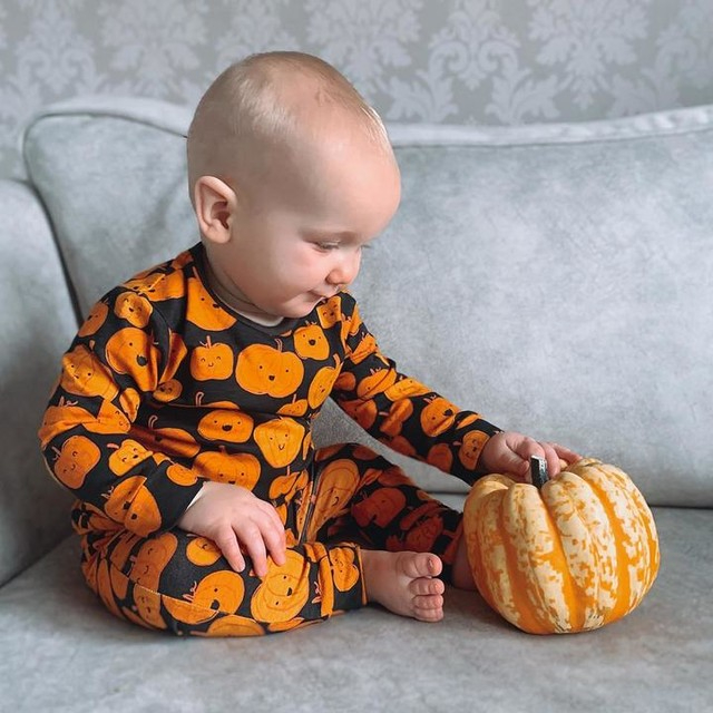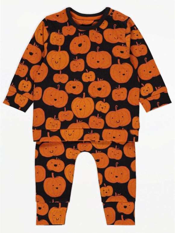 Комбинезончик флисовый фирмы George. Ярко-оранжевый, впереди аппликация Тыковка. Состав 100% полиэстер,