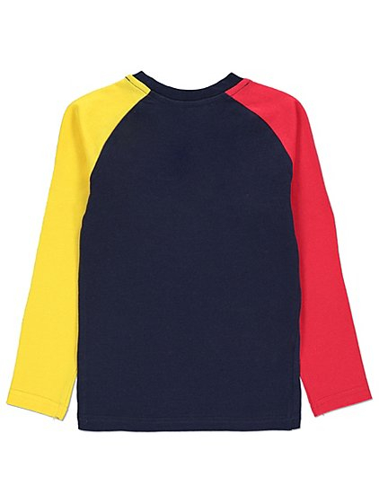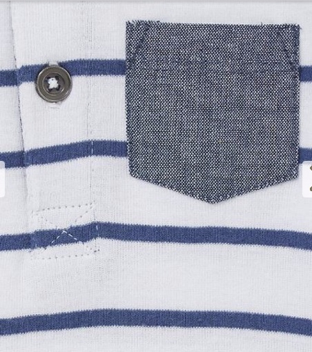 Фуболка-поло фирмы Minoti . Белая с синими, темно-синими и оранжевыми полосками, застежка 4 пуговички, на груди эмблема и кармашек, на спине рисунок. Состав 100% хлопок.