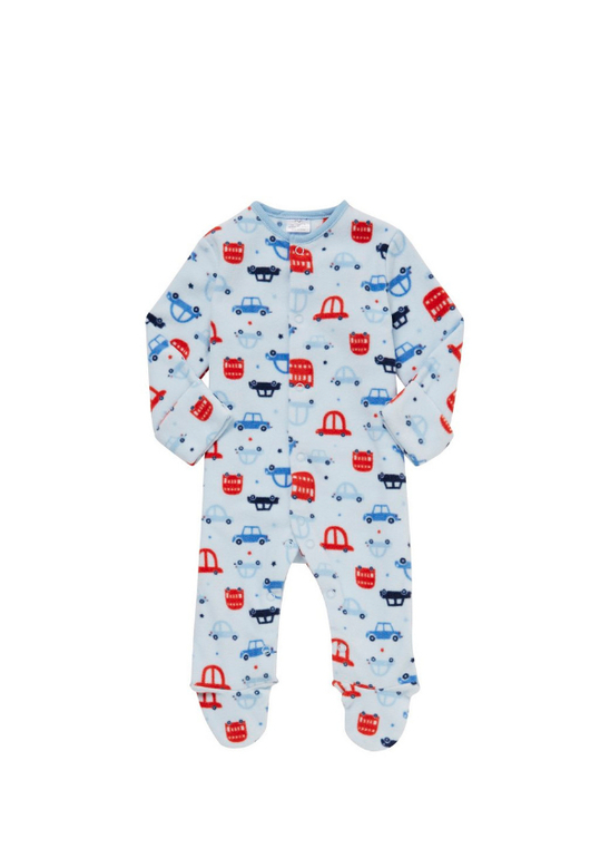 Флисовый слип "Машинки" фирмы F&F. Флис мягенький, полностью на кнопках с верху до низа, голубой с яркими машинками по всему слипу.